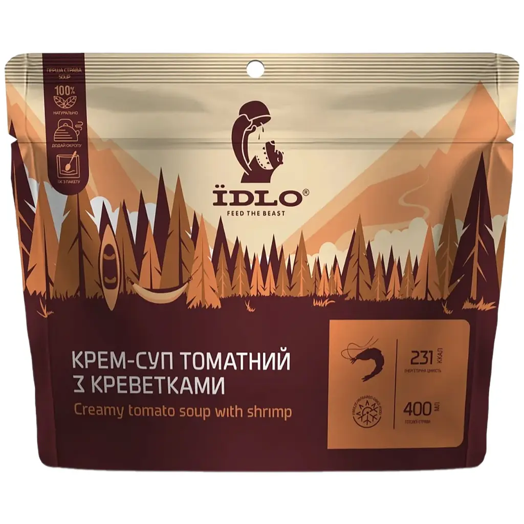 Крем-суп Їdlo томатный с креветками с гордостью изготовлен в Украине методом сублимации натуральных ингредиентов. Масса порции: 400 г.