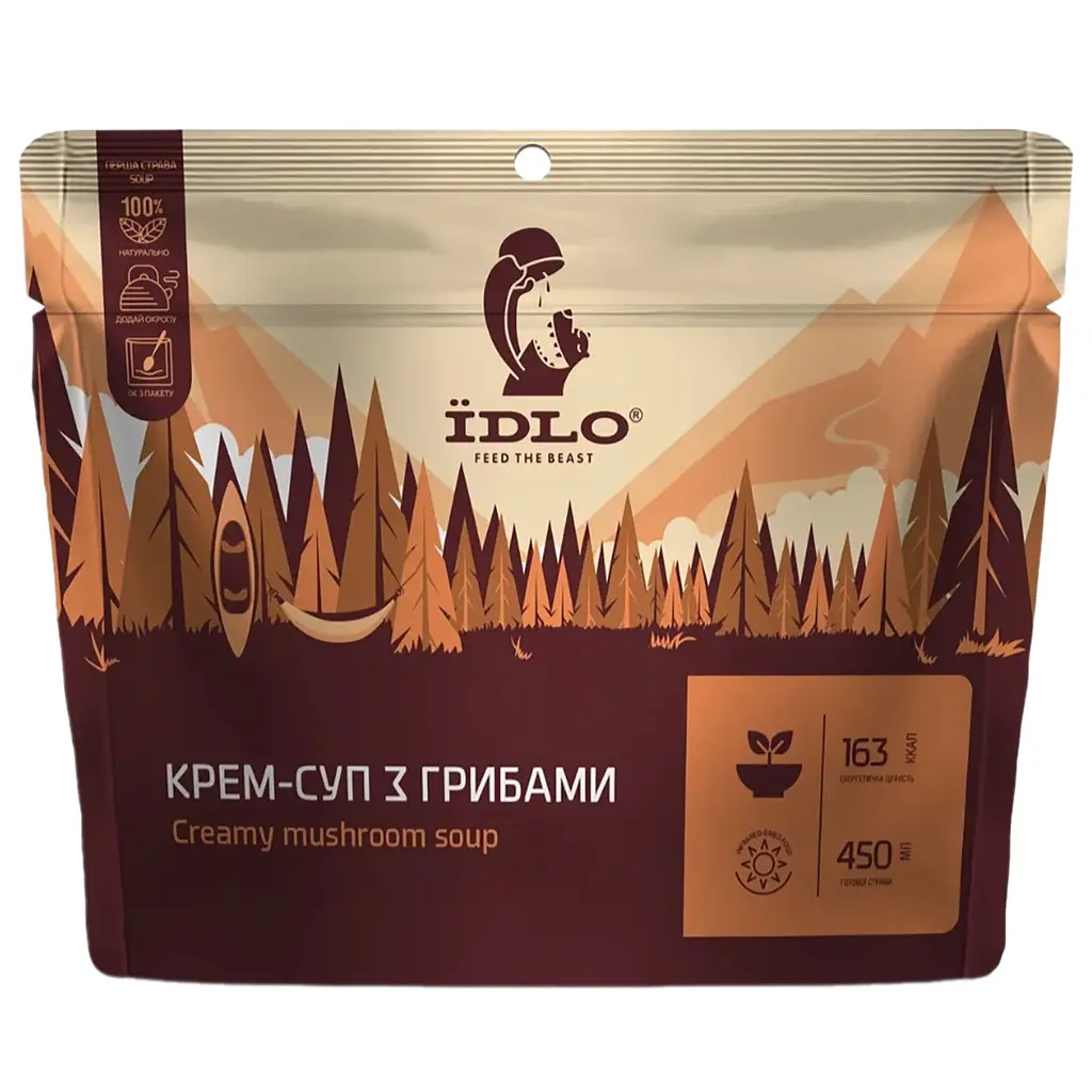 Крем-суп Їdlo з грибами с гордостью изготовлен в Украине методом сублимации натуральных ингредиентов. Масса порции: 450 г.
