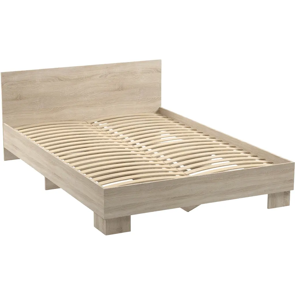 Полуторная кровать Orange-Line Тина 140 выполнена в стиле минимализм с цветным решением дуб сонома. Модель предназначена для спального места размером 140х200 см и имеет общие габариты 203х143.5х73 см. Конструкция включает в себя изголовье, создающее комфортную зону для отдыха и чтения. Изголовье, изножье и боковые царги выполнены из ДСП, создавая цельный внешний вид. Основание под матрас состоит из деревянных ламелей, обеспечивающих правильную вентиляцию и ортопедическую поддержку. Прямоугольная форма и нейтральный цвет дуб сонома позволяют легко вписать кровать в различные интерьерные стили. Устойчивые ножки гарантируют надежную опору и стабильность конструкции. Отсутствие дополнительных ниш хранения делает модель компактной и подходящей для небольших помещений.