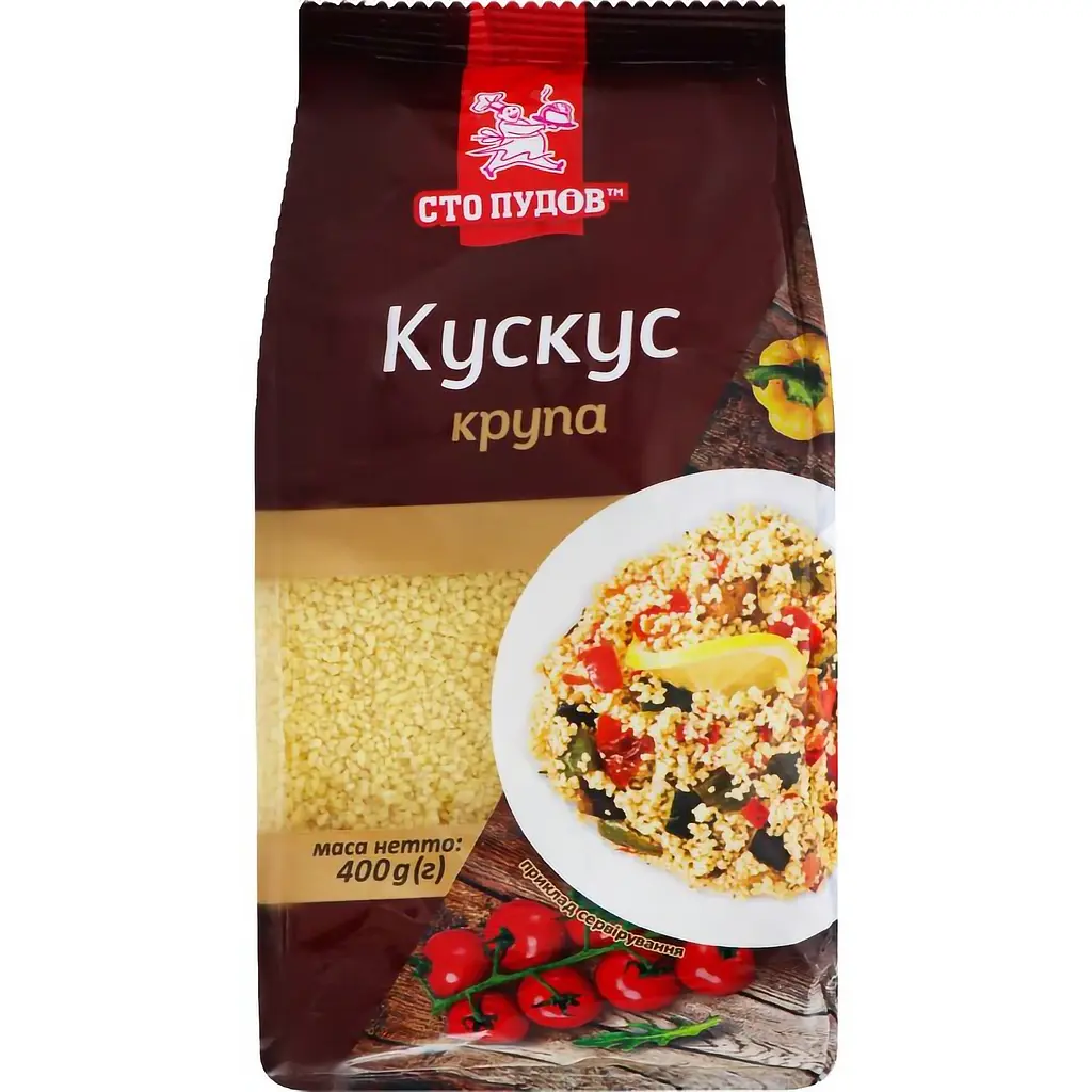 Крупа Сто пудів Кускус - популярный ингредиент в средиземноморской и восточной кухне, идеально сочетающийся с овощами, мясом, рыбой и разнообразными соусами. Она имеет мелкие гранулы, которые после приготовления становятся мягкими и рассыпчатыми. Для приготовления достаточно залить кускус крутым кипятком в соотношении 1:2, накрыть крышкой и дать настояться 5-7 минут. Эта крупа является источником белка, клетчатки и витаминов, способствующих нормализации обмена веществ и поддержанию энергии в течение дня.