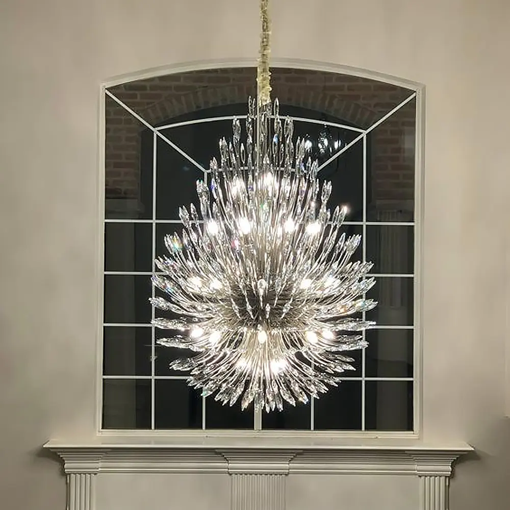 Современная классика в новой интерпретации. Изысканная люстра с хрустальными камешками в виде бутонов линий. Корпус выполнен из металла, на кончиках рожков размещены многогранные хрусталики, переливающиеся разными цветами от света 9-ти ламп с цоколем G9. Количество источников света: 55 Серия: MD 8058 Цвет основы: Серый Максимальная высота: 160 см Минимальная высота: 58 см Тип цоколя: G9 Цвет хрусталя: Прозрачный Тип крепления: Монтажная планка