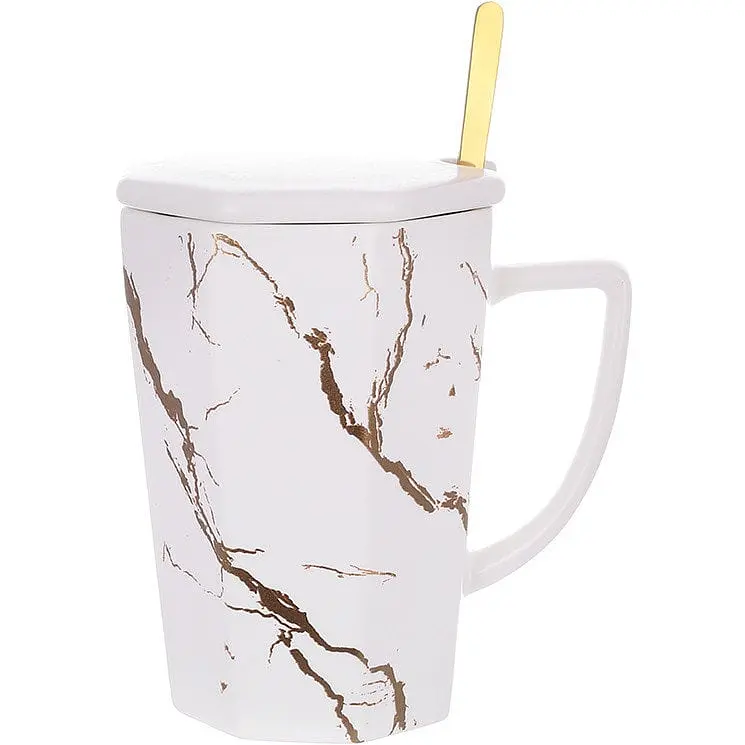 Кружка фарфоровая заварочная с крышкой и ложкой BonaDi Мраморная роскошь 350мл