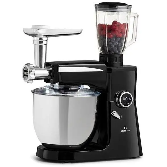 Один на все - размер XL.Кухонный комбайн Klarstein Renata - мощное универсальное чудо для вашей кухни. Очень практичный, он сочетает в себе миксер, миксер и мясорубку в одном устройстве. Благодаря мощности 2000 Вт на 8 уровнях, планетарной системе смешения и гигантской 10-литровой чаше из нержавеющей стали он может справиться со всеми проблемами современного смешения, от тяжелого хлебного теста до рыхлых взбитых сливок. Вы можете приготовить свежие смузи и вкусные коктейли в блендере объемом 1,5л. А для любителей свежего фарша или макарон идеальным дополнением станет насадка для мясорубки из нержавеющей стали. Встроенный цифровой дисплей с поворотной ручкой позволяет легко регулировать скорость и показывает время работы так, чтобы вы могли точно перемешивать. Красочный дизайн вашего нового миксера Klarstein Renata 3-в-1 также является мощным. Это означает, что она будет звездой на вашей кухне даже после использования!