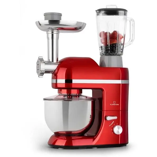Кухонный комбайн Klarstein Lucia Elegance 3-в-1 -¦универсальный инструмент для кухни: с миксером для замешивания, перемешивания или взбивания, блендером для измельчения и смешивания и мясорубкой для свежего фарша, вкусной домашней кухни. Благодаря 1800 Вт, 6 скоростям и проверенной планетарной системе перемешивания Klarstein легко справляется со всеми вызовами современной кухни. Даже большие объемы не проблема: благодаря 5-литровой чаше из нержавеющей стали и 1,5-литровому кувшину блендера. Кухонный комбайн также поражает визуально: благодаря компактному дизайну миксер Klarstein Lucia Elegance станет прекрасной фигурой на вашей кухне.