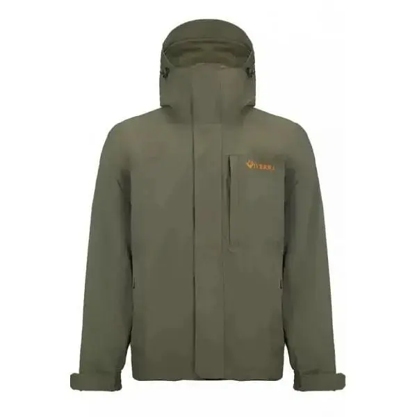 Куртка мембранная Viverra 4Stretch Rain Jacket Olive. Изготовлена из трехслойной водостойкой мембраны 4 Way Stretch выполняет три основные задачи: защищает от ветра, не дает промокнуть в дождь и дышит при этом, отводя горячий пар от тела при активном использовании. Куртка предназначена для самых экстремальных условий ловли, которые могут сопровождать рыболова в осенне-весенний период. Она позволяет создать чувство комфорта как во время дождя, так при сильном ветре. Благодаря использованию трехслойного мембранного материала с водостойкостью 10000 мм и пароотводящими свойствами 10000 г/см² обеспечивается полная защита от влаги и выход наружу всех испарений, которые возникают во время активных движений. А дополнительная поверхностная DWR обработка не позволяет ткани впитывать воду. Таким образом, тело всегда остается сухим и долго сохраняет температуру даже во время длительного пребывания на открытом воздухе. Для того чтобы добиться полной герметичности, все швы проклеены. Куртка не имеет утеплителя, поэтому может использоваться в качестве верхнего защитного слоя в системе многослойной техники снаряжения, при которой пользователь самостоятельно регулирует количество и плотность утепляющих элементов, исходя из температуры воздуха. То есть, при довольно теплой погоде можно надеть только термобелье, которое будет способствовать быстрому выведению влаги изнутри, а при понижении температуры поддевать согревающие кофты. Все внутренние швы проклеены для полной герметизации и защиты от дождя. Также из преимуществ этого технологического материала следует отметить его эластичность, он тянется в четырех направлениях и не сковывает движений. Куртка имеет два кармана для рук и один нагрудный карман слева на молнии, глубокий и полностью регулируемый капюшон с козырьком, высокий воротник-стойку, манжеты на широких липучках для надежной фиксации, все молнии закрыты влагозащитными клапанами. Благодаря не громоздкому материалу куртку можно компактно сложить для удобства в транспортировке. Собираясь на рыбалку, тихую охоту, похода в горы или любую поездку, возьмите куртку Viverra 4Stretch Rain Jacket Olive, чтобы переменная погода не помешала вашим планам. Водонепроницаемая и дышащая куртка – это идеальное и универсальное решение для любых мероприятий на свежем воздухе. В этой модели использованы все технологии, обеспечивающие долгий срок службы и комфорт.