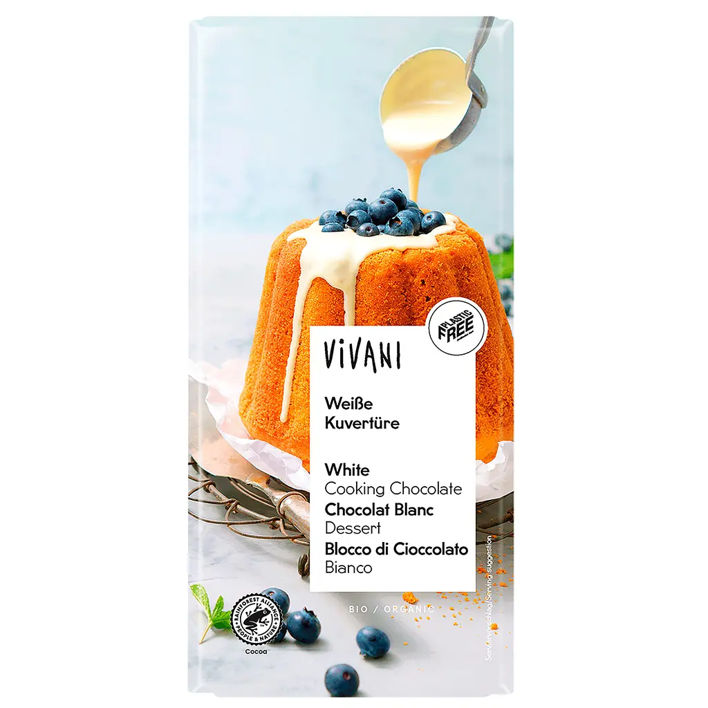 Кувертюр белый Vivani Cooking Chocolate - это высококачественный продукт, используемый в кулинарии для приготовления разнообразных кондитерских блюд и десертов. Предназначен в частности для плавки и приготовления глазури, шоколадных соусов, кремов, тортов, печенья и других кондитерских изделий.