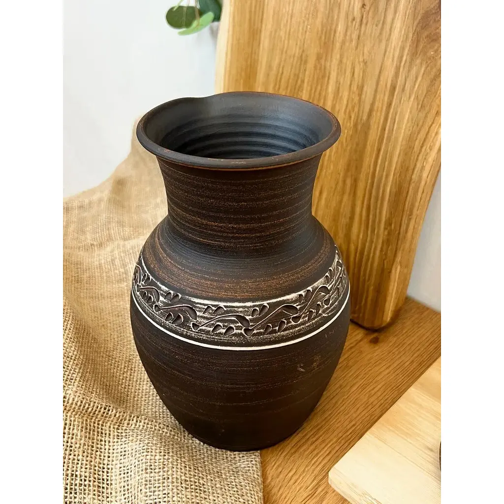 Этот кувшин станет отличным выбором для хранения молочных продуктов, напитков или даже в качестве декоративного элемента в кухонном интерьере. Глина естественным образом поддерживает оптимальную температуру, а ручная резьба придает изделию аутентичный украинский стиль.