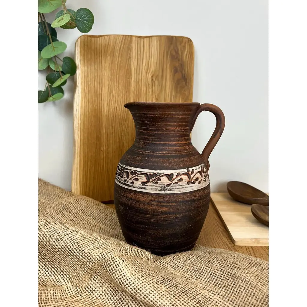 Этот кувшин сочетает в себе эстетику традиционной керамики и практичность. Благодаря натуральной глине напитки дольше остаются прохладными, а ангобинг придает продукту тонкий контраст. Идеально подходит для подачи молока, компота, компота или вина.