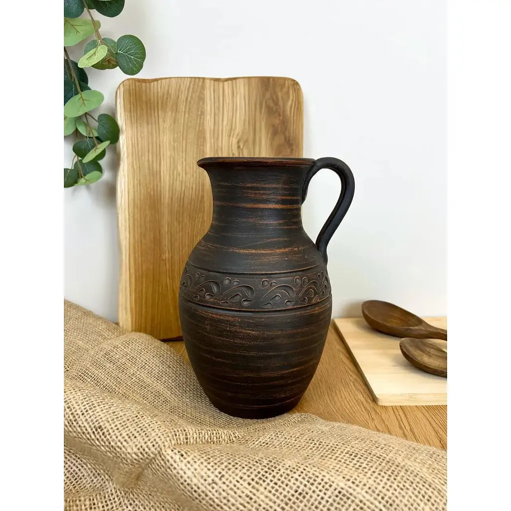 Этот кувшин - идеальный выбор для хранения молока, компота или домашних напитков. Глина обеспечивает естественное охлаждение и сохранение вкуса, а стильный дизайн гармонично впишется в ваш интерьер.