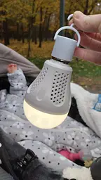 Корисна річ в наших реаліях. Лампа живиться від мережі й коли світло пропадає продовжує світити, хоча й дещо слабше, але всеодно це приємно. Яскравість поступово падає - приблизно після години роботи вже зовсім слабенька, але повного згасання я ще жодного разу не дочекався (чекав десь до 6 годин). Лампа суттєво більша ніж звичайна, але цоколь стандартний. Також її можна викрутити й причепити де завгодно (в комплекті йде спеціальна насадка з гачком).