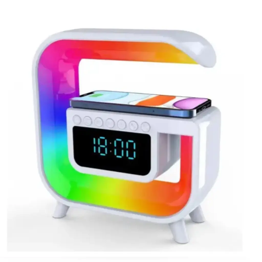 Лампа-ночник с беспроводной зарядкой часами и будильником, Bluetooth колонка