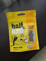 Ласощі для котів Half&Half з куркою сподобались моєму улюбленцю — їв із задоволенням.