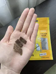 Ласощі приємно пахнуть, розмір такий, щоб кіт брав як подушечки звичайного сухого корму. При цьому є розуміння, що це ласощі, і вони дуже цікавлять улюбленця, явно подобаються йому на смак. А я задоволений вартістю.