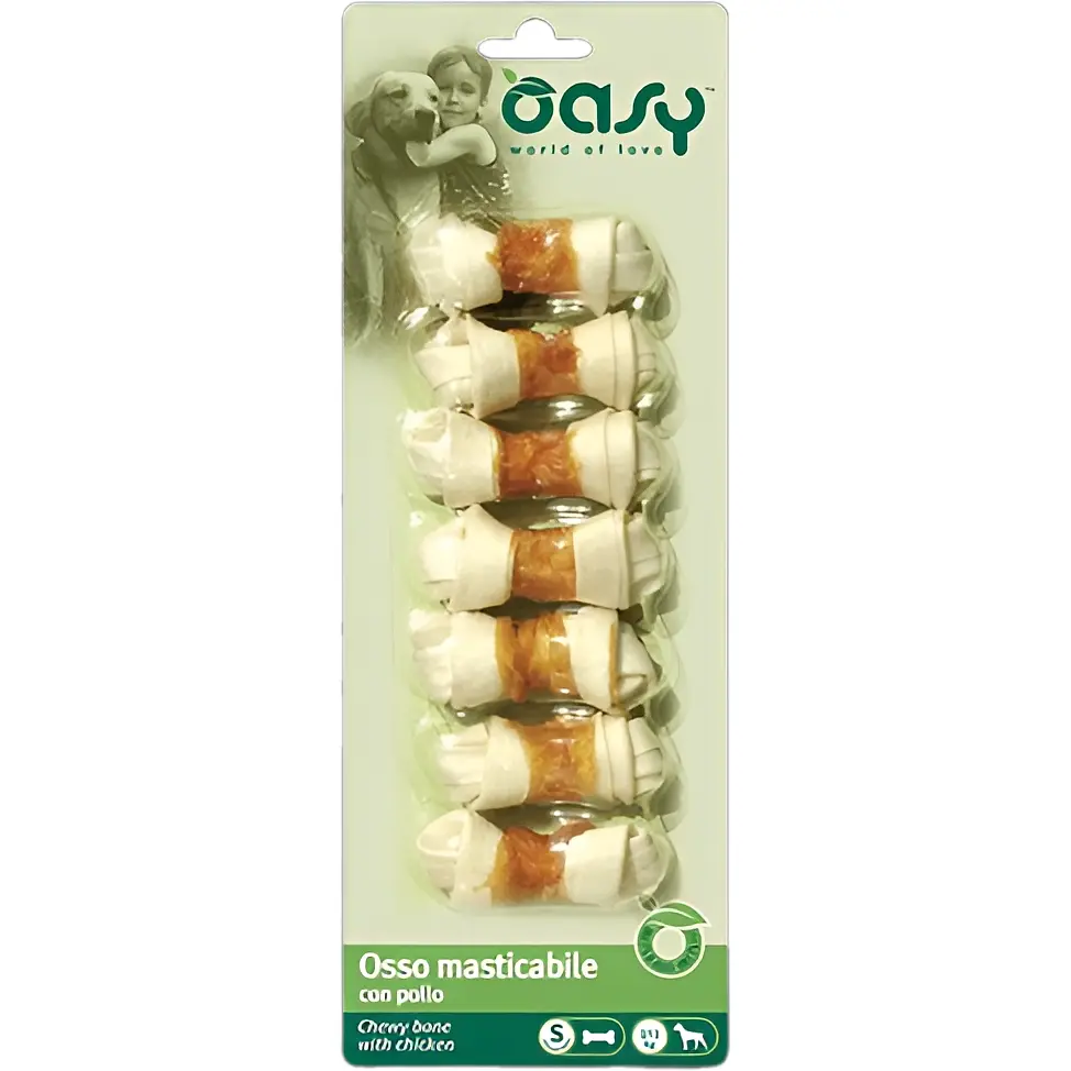 Лакомство для собак Oasy Dog Chewy Bone имеют только 2% жира и богаты белком. Это вкусная и полезная закуска для вашей собаки. Награждая им своего любимца, вы удовлетворите его потребности в жевании и поможете сохранить здоровые зубы и десну. Размер S идеально подходит для собак мельчайших пород.