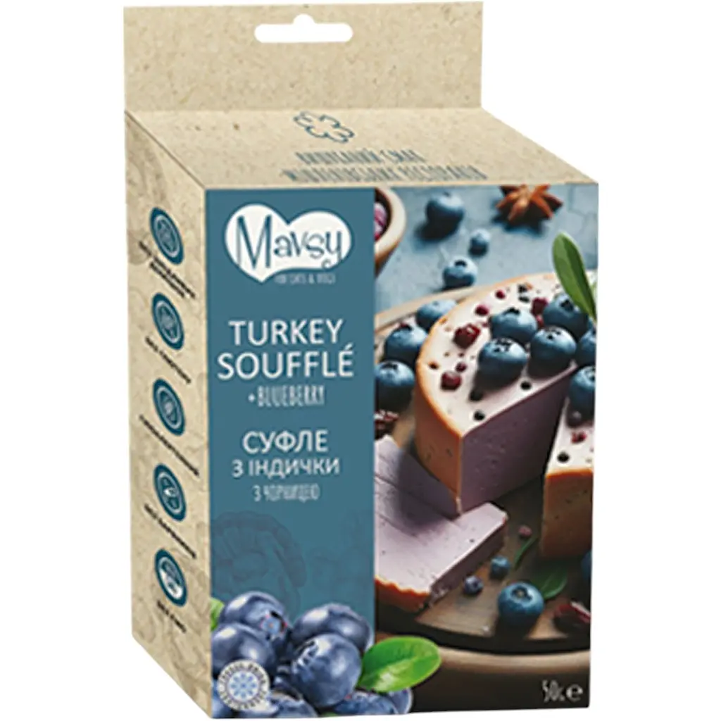 Нежная текстура суфле привлекает даже самых требовательных собак, обеспечивая им не только вкусное угощение, но и полезную питательную добавку. Mavsy суфле из индейки с черникой - это идеальный выбор для тех, кто заботится о здоровом питании своего щенка, сочетая пользу ингредиентов с великолепным вкусом.