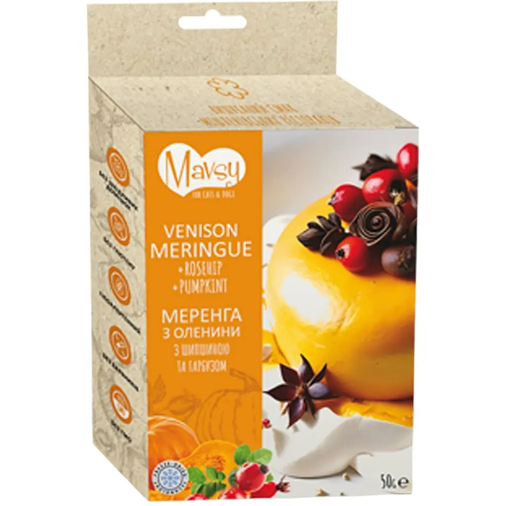 До конца акции 66 днейЛакомство для собак Mavsy "Venison, Rosehip & Pumpkin" (оленина с шиповником и тыквой) - это изысканное сочетание натуральных ингредиентов, которое подарит вашему питомцу не только вкусовое наслаждение, но и пользу для здоровья. Этот уникальный продукт создан специально для собак, чтобы разнообразить их рацион и поддержать активный образ жизни.