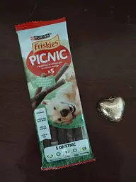 Purina Friskies Picnic з яловичиною — смачні ласощі, які добре підходять для винагороди під час прогулянок або тренувань. Собаки їдять із задоволенням, зручний маленький пакетик, але вистачає його ненадовго.