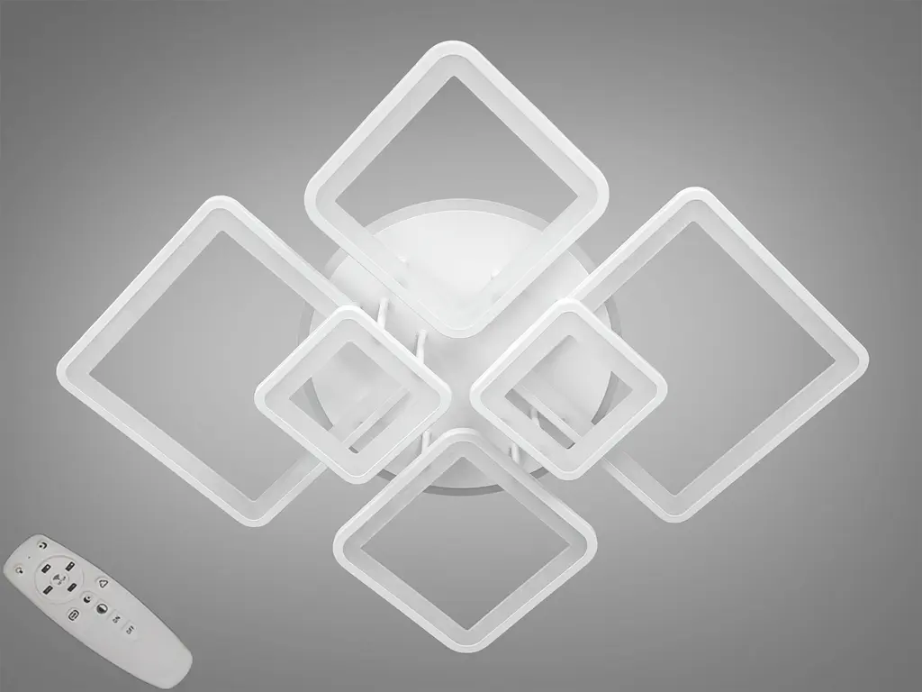 Припотолочная плоская светодиодная люстра с димером и LED подсветкой на 150 W является настоящим воплощением новейшего дизайна и технологического совершенства. Она идеально подходит для тех, кто хочет купить люстру, способную трансформировать интерьер и придать ему неповторимый характер. Со своей каскадной структурой переплетенных квадратов, светящихся снаружи, эта плоская люстра напоминает абстрактную скульптуру, замершую в световом танце. Каждый элемент этого осветительного прибора излучает тепло и свет, как будто каждый квадрат – это отдельная история, сплетенная вместе в гармоничную симфонию форм и линий. Дизайн светодиодного светильника, напоминающий одновременно и модернистские произведения искусства, и сложные природные феномены, такие как галактические фигуры, поражает своей утонченностью и артистизмом.