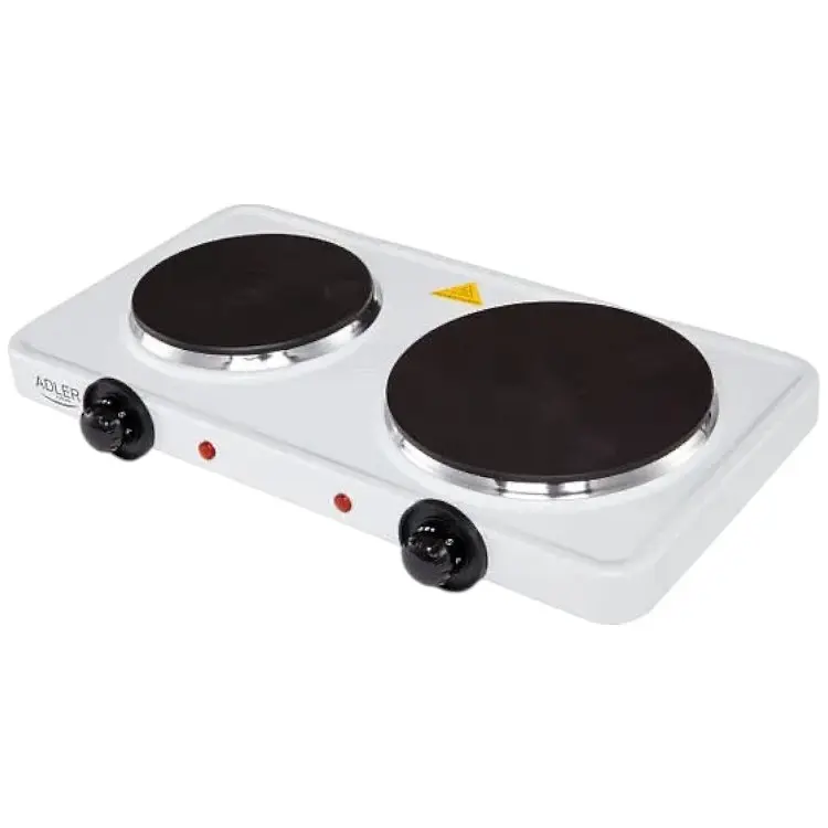 Электрическая плита Adler AD 6504 имеет две конфорки диаметрами 18 см и 15,5 см. Ее полная мощность составляет 2500 Вт. Эти параметры позволяют использовать на электроплите посуду большого диаметра.