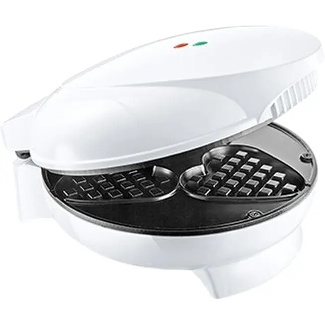 Нагревательный элемент мощностью 1000 Вт обеспечит быстрый и равномерный нагрев двух рабочих поверхностей с антипригарным покрытием. Благодаря компактным размерам и фиксатору, вафельницу удобно хранить. На крышке есть световые индикаторы питания и готовность к работе, что облегчает контроль процесса приготовления.