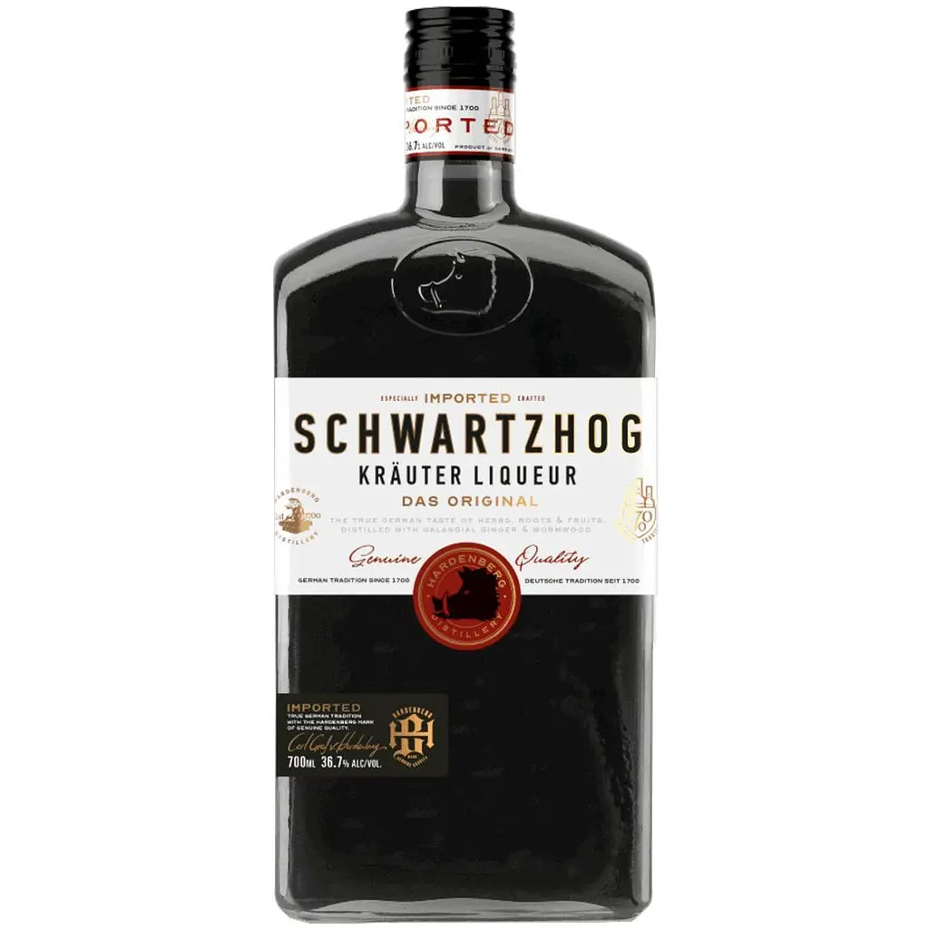 Ликер Schwartzhog Krauter Liqueur насыщенного темно-коричневого цвета. Изготовлен из уникальной смеси трав, корней и фруктов, среди которых полынь, имбирь и корень горечавки (Sauwurz). Schwartzhog отличается насыщенным горько-травяным вкусом с яркими нотками цитрусовой цедры и пряных трав. Его сложный аромат раскрывается интенсивными оттенками сушеной цитрусовой цедры, полыни и имбиря, создавая многослойную ароматическую композицию.