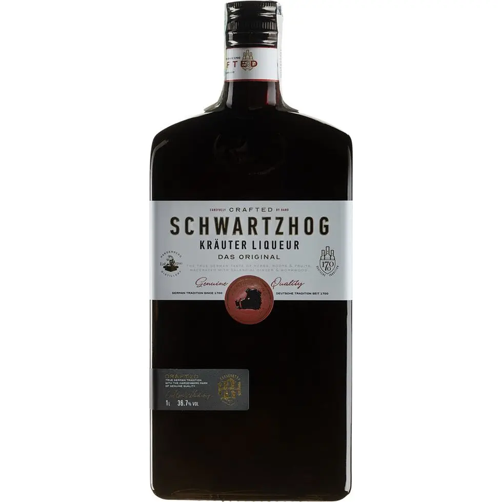 Ликер Schwartzhog Krauter Liqueur насыщенного темно-коричневого цвета. Изготовлен из уникальной смеси трав, корней и фруктов, среди которых полынь, имбирь и корень горечавки (Sauwurz). Schwartzhog отличается насыщенным горько-травяным вкусом с яркими нотками цитрусовой цедры и пряных трав. Его сложный аромат раскрывается интенсивными оттенками сушеной цитрусовой цедры, полыни и имбиря, создавая многослойную ароматическую композицию.