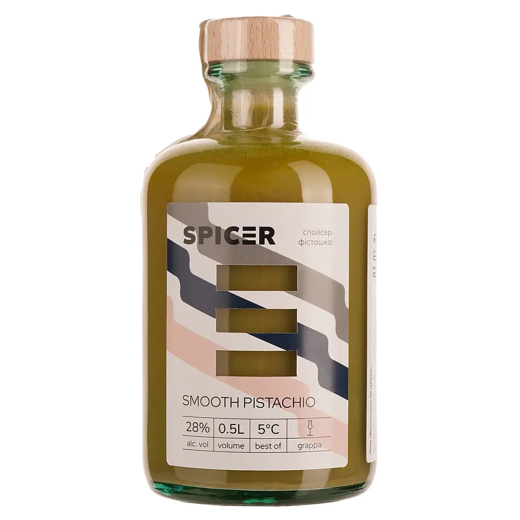 Ликер Spicer Фисташковый имеет плотную, густую консистенцию и непрозрачный, банановый цвет. Знакомый сладковатый вкус не обжаренных тропических орехов в сочетании с изюмом и корицей. В послевкусии раскрываются легкие нюансы банана и персика. Фисташковая нежность, закупоренная в бутылку.