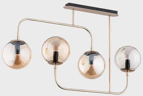 О товаре Люстра современная производства компании ALFA (Польша);Материалы: металл, стекло;Цвет основания: золото;Цвет плафонов: янтарный;Высота: 46 см; ширина: 78х15 см; лампы: 4 х Е-14 х 60 Вт..