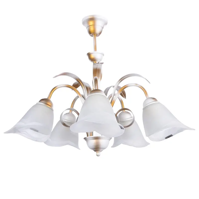 Кто сказал, что советским люстрам пора на свалку? Мы хотим поспорить и готовы предложить усовершенствованную модель "советской" люстры - подвесную люстру от ТМ Brille BKL-468S/5 E27 WH. Действительно, дизайн данного осветительного прибора напоминает дизайн светильников советских времен. Но, как говорится, классика вечна, поэтому люстра такого стиля будет всегда в тренде. Польские мастера изготовили ее из высококачественного металлического сплава, устойчивого к коррозии, а также стекла. К металлическому фигурному каркасу прикреплены пять стеклянных матовых плафонов белого цвета. Плафоны выполнены в форме цветочных бутонов. Стекло у них толстое, гладкое, делает свет мягким, слегка приглушенным. Кроме плафонов на каркасе находятся металлические элементы, имитирующие форму листьев. Дизайн люстры напоминает цветочный букет. Осветительный прибор рассчитан на пять лампочек с цоколем Е27. Такая изящная модель украсит собой гостиную, спальню как городской квартиры, так и загородного дома.