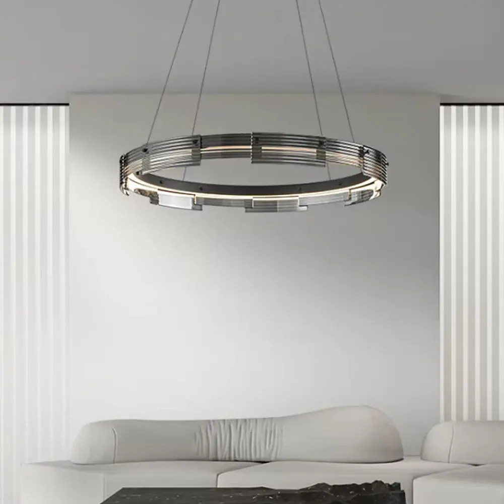 Дизайн этой люстры поражает своей изысканностью и стильностью. Подвесное кольцо изготовлено из металла черного цвета, а его внешняя сторона украшена стеклянными графитовыми рельефными пластинами двух размеров (высшие и ниже), которые придают объемности и современной эстетики. Внутри кольца расположены встроенные светодиоды с тремя режимами освещения: теплый, нейтральный и холодный свет. Модель доступна в двух размерах: Диаметр 60 см мощностью 28 Вт. Диаметр 80 см мощностью 37 w Вт. Благодаря регулируемой высоте подвешивания от 15 до 120 см, эта люстра гармонично впишется в помещение с разной высотой потолков. Эта модель станет идеальным выбором для просторных современных интерьеров, таких как гостиная, столовая или спальня. Ее современный дизайн и мягкий рассеянный свет создают уютную атмосферу, дополняя стильный декор. Цвет основы: 80 Серия: MJ 231 Диаметр кольца: 60 см Размер потолочной основы: 15х4 см Цветовая температура: 3000K,4500K,6500K Максимальная высота: 120 см Минимальная высота: 15 см Размер монтажной планки: 12 см Тип крепления: Монтажная планка Мощность (Вт): 37 w w