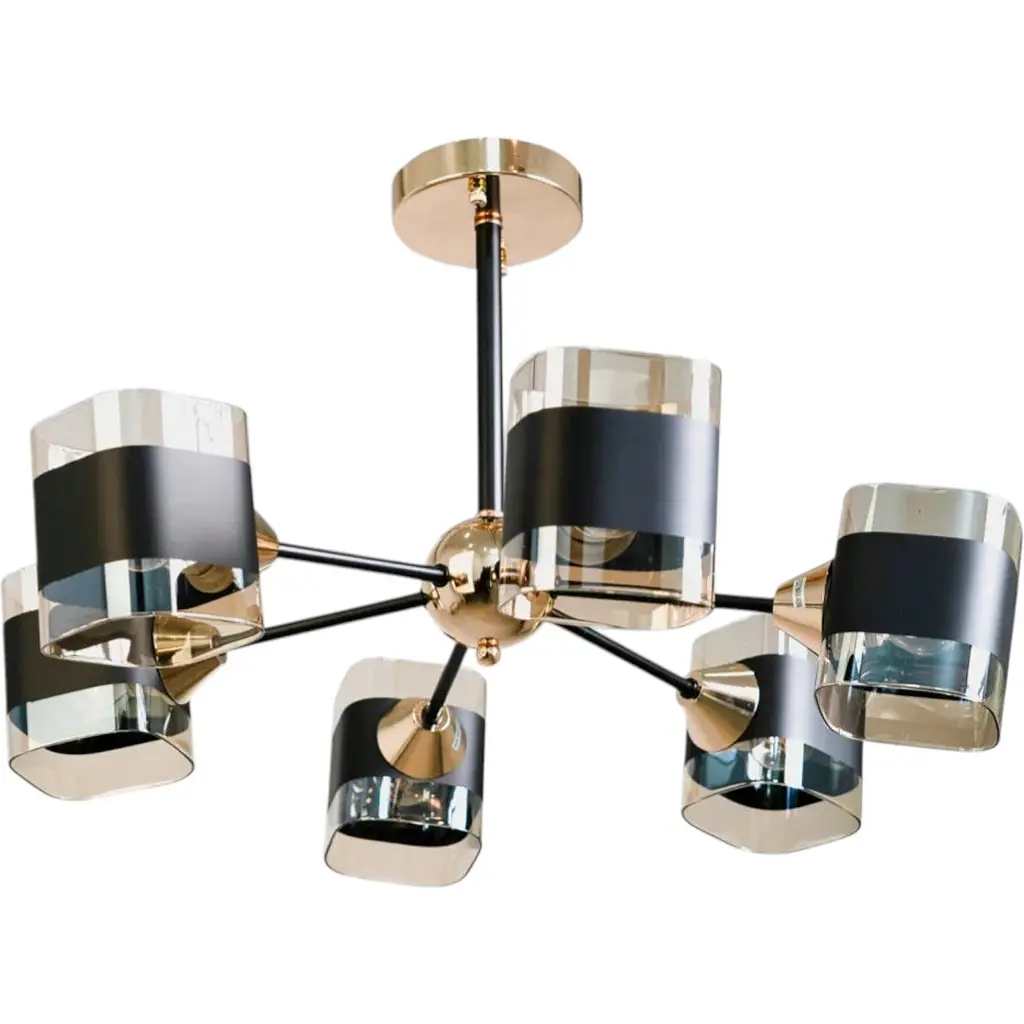Люстра LK-739C/5 E27 BK+GL - это воплощение современного дизайна и высокого качества. Изготовлена из прочных материалов и прослужит вам долгие годы. Люстра имеет металлический корпус в черном цвете с золотыми элементами. На вертикальной оси расположены пять прямых, перекрестных, горизонтальных держателей, на которых размещены стеклянные плафоны желтоватого оттенка, кубической формы с черной отделкой, что придает ей особый характер. В качестве источника света используется пять ламп с цоколем Е27 и максимальной мощностью 60Вт. Она дает возможность использования различных источников света, таких как светодиодные лампы, энергосберегающие лампочки или накаливания, что делает ее универсальным выбором. Очень эффектно здесь будет смотреться лампа Эдисона. Эта люстра легко монтируется и интегрируется в интерьер, обеспечивая равномерное и приятное освещение. Идеально подходит для использования в жилых помещениях, офисах, магазинах и других коммерческих пространствах. Подойдет для освещения квартиры, кафе, хостела или шоу-рума. Она впишется как в классический, так и в современный интерьер.