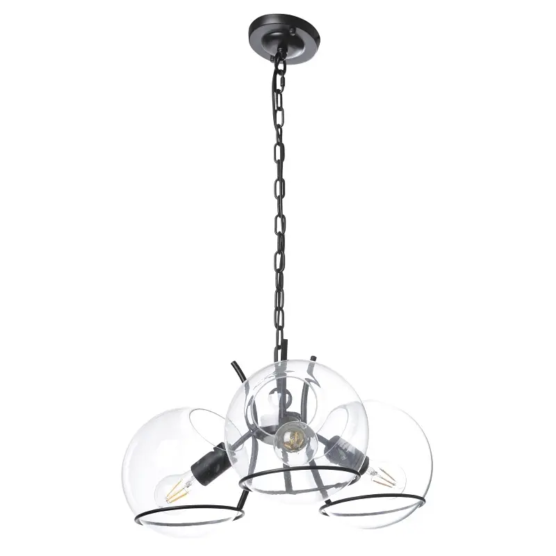 Если днем интерьер в стиле лофт наполнен воздухом и светом, то в темное время суток его необходимо хорошо осветить. А поможет в этом деле подвесная люстра BL-389S/3 E27 BK. Такая модель будет выигрышно смотреться в гостиной с темной мебелью и кирпичными стенами. Подойдет и для освещения кухни с мраморной столешницей, барной стойкой. Осветительный прибор изготовлен из металла и стекла, выполнен в черном цвете. Конструкция состоит из кронштейна и стеклянных прозрачных плафонов в форме шара. Высоту люстры можно регулировать с помощью металлической цепи, путем удаления или добавления звеньев. Для работы необходимо использовать три лампочки с цоколем Е27 мощностью 60 Вт. Особенно хорошо люстра будет смотреться с декоративными лампами Эдисона.