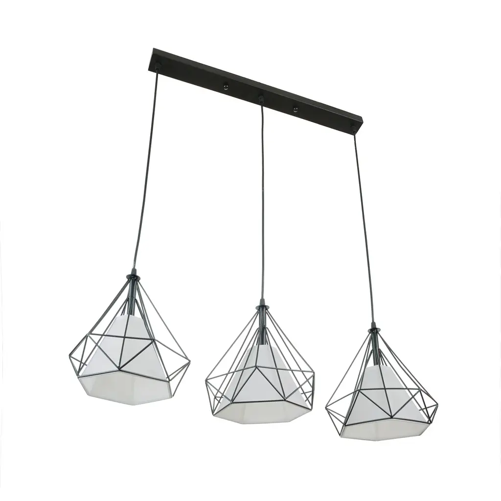 Люстра подвесная лофт BL-774S/3 E27 предназначена для освещения жилых помещений, кухонь, баров, кафе и ресторанов. Современная и оригинальная пригодится для реализации новых и интересных дизайнерских проектов. Состоит из основы и трех плафонов, подвешенных на длинных проводах-подвесах. Основа прямоугольной формы крепится к потолку с помощью монтажной планки. Белые прозрачные плафоны конусной формы размещены в черном ажурном каркасе прямолинейной конфигурации и направляют свет вниз. Длина проводов-подвесов может меняться, при этом максимальная высота светильника составляет 87 мм. Люстра предназначена для работы в сети переменного тока с номинальным напряжением 220 В. В качестве источника света используются три лампочки накаливания мощностью 60 Вт с цоколем Е27, или соответствующие этим характеристикам энергосберегающие или светодиодные. Степень защиты от проникновения влаги и пыли IP20, это означает, что применять устройство можно исключительно внутри помещений с нормальной влажностью. Длина люстры составляет 800 мм, ширина - 250 мм.