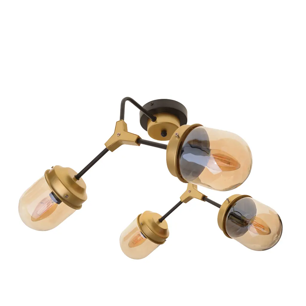 Люстра BL-804S/4 E14 SJ + BK - хороший светильник для спальни, коридора, детской, кухни, гостиной, зала. Люстра на четыре плафона прекрасно впишется в интерьер стилей лофт, современный, классика, хай-тек, модерн и другие. Купить люстру на четыре плафона можно для установки как дома, так и в офисе, магазине, гостинице, ресторане. Светильник состоит из металлической основы черного цвета, к которой крепятся два железных прута. Каждый из них разветвляется на еще два прута, которые удерживают стеклянные белые прозрачные плафоны. Стильная, элегантная, аккуратная люстра на четыре плафона работает благодаря источникам света с цоколем Е14. Они могут быть светодиодными, энергосберегающими, лампами накаливания. Использование энергосберегающих и лед ламп обеспечит экономию электроэнергии на уровне 90-95%. Мощность устанавливаемых источников света должна быть не более 40 Вт. Эта люстра среднего размера: 650х420х340. Светильник достаточно мощный, чтобы обеспечить качественное, хорошее основное освещение в комнате, выглядит стильно и привлекательно.