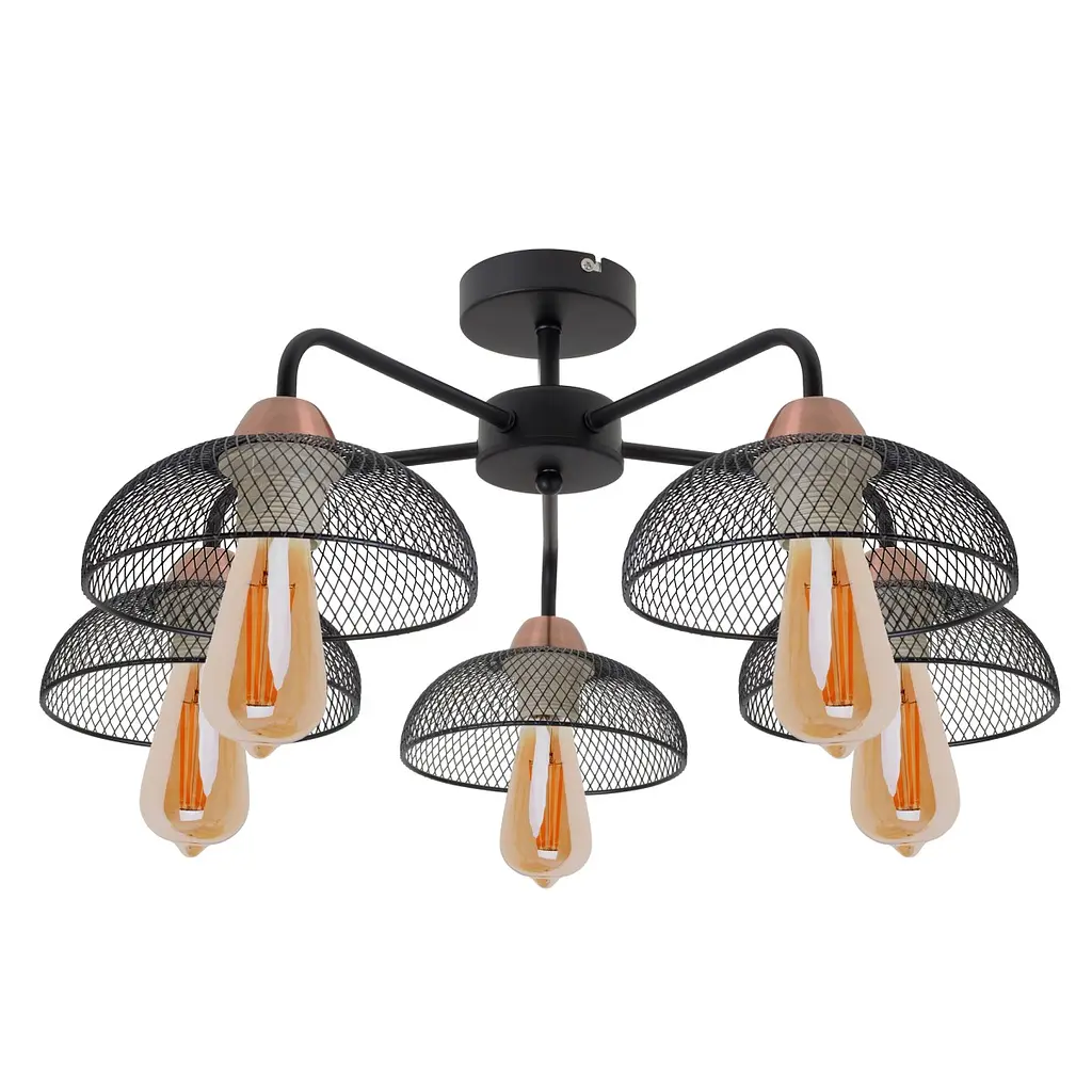 В стандартных панельных квартирах все хорошо, но невысокие потолки сильно ограничивают в выборе люстр. Данная модель BL-592S/5 E27 BK/Cop подойдет для помещений любых размеров, так как монтажная планка позволяет крепить ее непосредственно на поверхность, не занимая лишних сантиметров, как делают люстры на подвесе. Черный металл с латунными вставками придаст интерьеру выдержанности, а пять источников света дадут ровное и яркое основное освещение. Сетчатые плафоны при включении помогут создать интересную игру света и тени. В люстре можно использовать лампы любого типа - накаливания, энергосберегающие и светодиодные мощностью 60 W с универсальным цоколем Е27. Такой светильник будет прекрасно смотреться в гостиной, холле или на кухне. На всю продукцию действует гарантия.