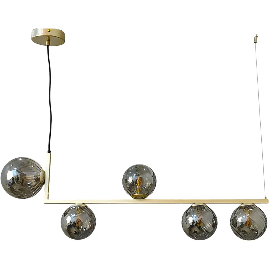 Люстра молекула подвесная BR-01 699S/5 G9 GD представлена в стиле модерн. Это прямолинейная подвесная конструкция из металла и стекла, состоит из Г-образной жердочки, на которой установлены плафоны, расположенные асимметрично по отношению к ней. Корпус изготовлен из металла в золотом цвете и стеклянных круглых плафонов серого цвета. Свет направлен во все стороны. В качестве источника света используется 5 лампочек мощностью 40Вт. typ_lamp_4 подойдет как светодиодная, так и энергосберегающая. Тип цоколя G9. Класс энергопотребления А+. Длина самого подвеса составляет 1 м, что позволяет самостоятельно регулировать на какой высоте будет прибор. Эта люстра подвес подойдет для бытового и коммерческого освещения. Прекрасно впишется в интерьер гостиной, холла, кабинета, ресторана, кафе или шоу-рума. И станет интересной изюминкой в помещении.