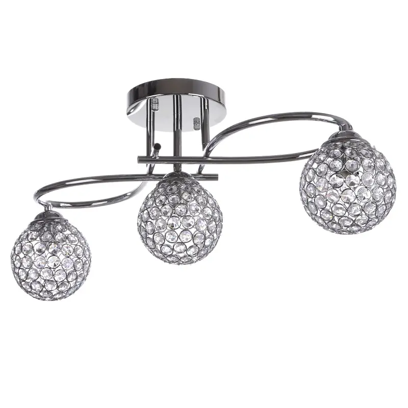 Перед вами люстра в стиле модерн от ТМ Brille BR-01 383S/3 E14 CH. Компактная, не занимает жилое пространство помещения, конструкция люстры лишена излишка декоративных элементов, что ни в коем случае не является недостатком осветительного прибора. Наоборот, без украшений (цепочек и подвесок) выглядит оригинально и свежо. Если вы предпочитаете удобство и функциональность в предметах интерьера, тогда эта люстра - идеальный вариант. Изготовлена она из металла со стеклянными вкраплениями. Конструкция состоит из хромированного фигурного каркаса, к которому прикреплены три плафона в форме шара. Если присмотреться, то плафоны состоят из множества крупных стеклянных стразов, которые зафиксированы на тонком проволочном каркасе. Внутри плафонов находится патрон для лампочки с цоколем Е14. Для работы осветительного прибора необходимо использовать три лампочки мощностью 40 Вт. Вы, конечно же, можете выбрать лампочки любого типа, мы рекомендуем использовать светодиодные. Они служат долго, а светят ярко. На всю продукцию действует гарантия.