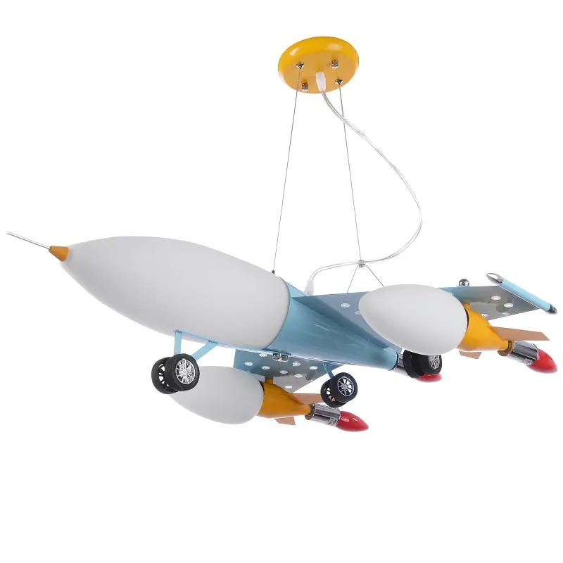 Подвесная люстра самолет в детскую на 6 ламп KL-426S/3 E14 + 3 E27 BL сделана в форме игрушки. Самолет крепится к круглой металлической основе. Высоту люстры можно менять с помощью металлических тросов. Для работы осветительного прибора необходимо использовать три лампочки с цоколем Е14 и три с цоколем Е27. Мощность каждого источника света - 40 Вт. Корпус люстры изготовлен из металла, окрашен в синий цвет с вкраплениями желтого. Конструкция светильника включает кабину, вспомогательные элементы, крылья для взлета и посадки, шасси. На корпусе расположены три стеклянных плафона белого цвета продолговатой формы. Они излучают мягкий, приятный для восприятия свет. Психологи рекомендуют выбирать для освещения детской комнаты лампы с мягким теплым свечением. Такой свет не будет раздражать глаза малыша и вызывать усталость. Кроме плафонов, на крыльях люстры-самолета находятся три лампочки красного цвета в форме свечи. К потолку люстра крепится с помощью монтажной планки. Гарантия на товар - 12 месяцев. Высота осветительных приборов легко регулируется, ее можно изменить, подняв или опустив цепь, веревку или трос. Таким образом люстра будет висеть на большей или меньшей высоте в зависимости от ваших предпочтений. На всю продукцию действует гарантия. Высота осветительных приборов легко регулируется, ее можно изменить, подняв или опустив цепь, веревку или трос. Таким образом люстра будет висеть на большей или меньшей высоте в зависимости от ваших предпочтений. Высота осветительных приборов легко регулируется, ее можно изменить, подняв или опустив цепь, веревку или трос. Таким образом люстра будет висеть на большей или меньшей высоте в зависимости от ваших предпочтений.
