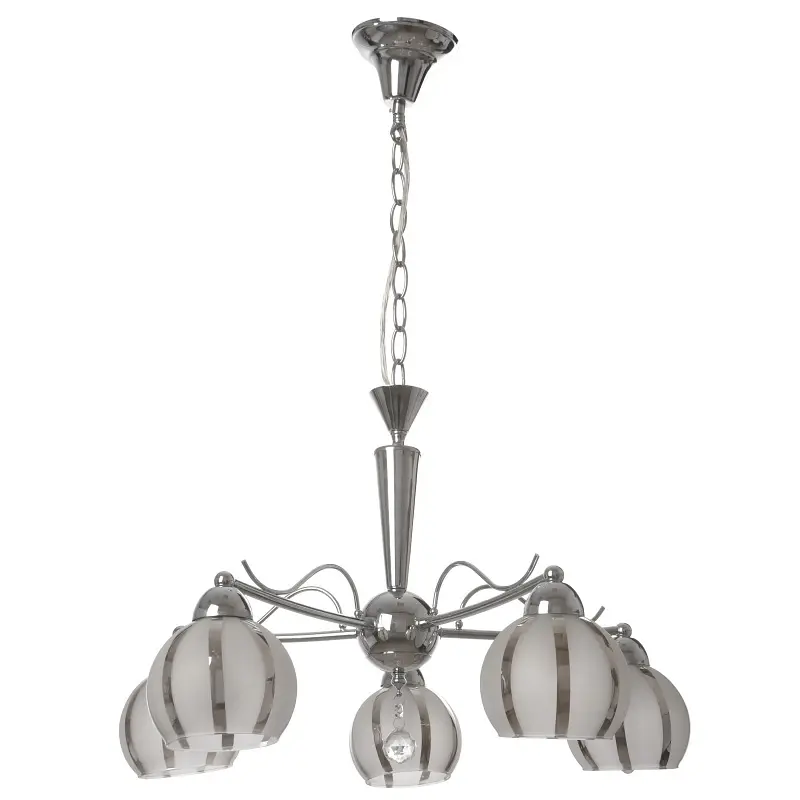 Оригинальная люстра LK-520S/5 E14 выполнена в стиле модерн. Этот стиль придает люстре легкости и изысканности. Изготовлена она из стекла и металла. Благодаря стеклу, которое хорошо пропускает свет, светоотдача от люстры будет максимальной. Люстра имеет пять стеклянных плафонов круглой формы с матовым покрытием белого цвета. С помощью металлической цепи серебристого цвета можно легко регулировать высоту люстры. В центре люстры находится стеклянная подвеска. Для работы люстры необходимо пять лампочек с цоколем Е14. Благодаря минимализму в художественном оформлении люстры ее можно поместить в любой интерьер.
