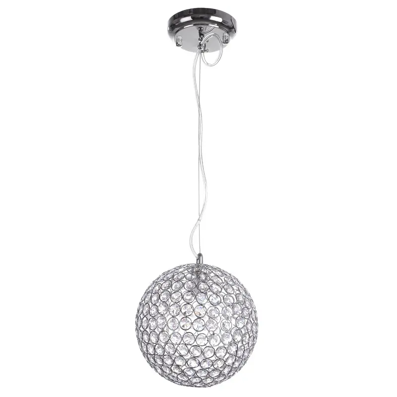 Люстра для кухни подвесная BR-01 386S/1 E14 CH сконструирована в виде сферы, подвешенной к потолку на металлической струне. Сфера состоит из большого количества крупных стеклянных прозрачных граненых стразов, которые зафиксированы на тонком проволочном хромированном каркасе. Высоту люстры можно устанавливать в зависимости от параметров интерьера. Внутри сферы находится один патрон под тип цоколя E14. Свет люстры преломляется в гранях стразов и создает фантастическое сияние. Это могут быть лампы накаливания, светодиодные или энергосберегающие. Светодиодные лампы отличаются качественным светом и экономным потреблением электроэнергии. Вешать такую люстру можно как в жилых помещениях, так и в залах кафе и ресторанов. Высота осветительных приборов с легкостью регулируется, ее можно изменить, подняв или опустив цепь, веревку или трос. Таким образом люстра будет висеть на большей или меньшей высоте в зависимости от ваших предпочтений. Высота осветительных приборов легко регулируется, ее можно изменить, подняв или опустив цепь, веревку или трос. Таким образом люстра будет висеть на большей или меньшей высоте в зависимости от ваших предпочтений.