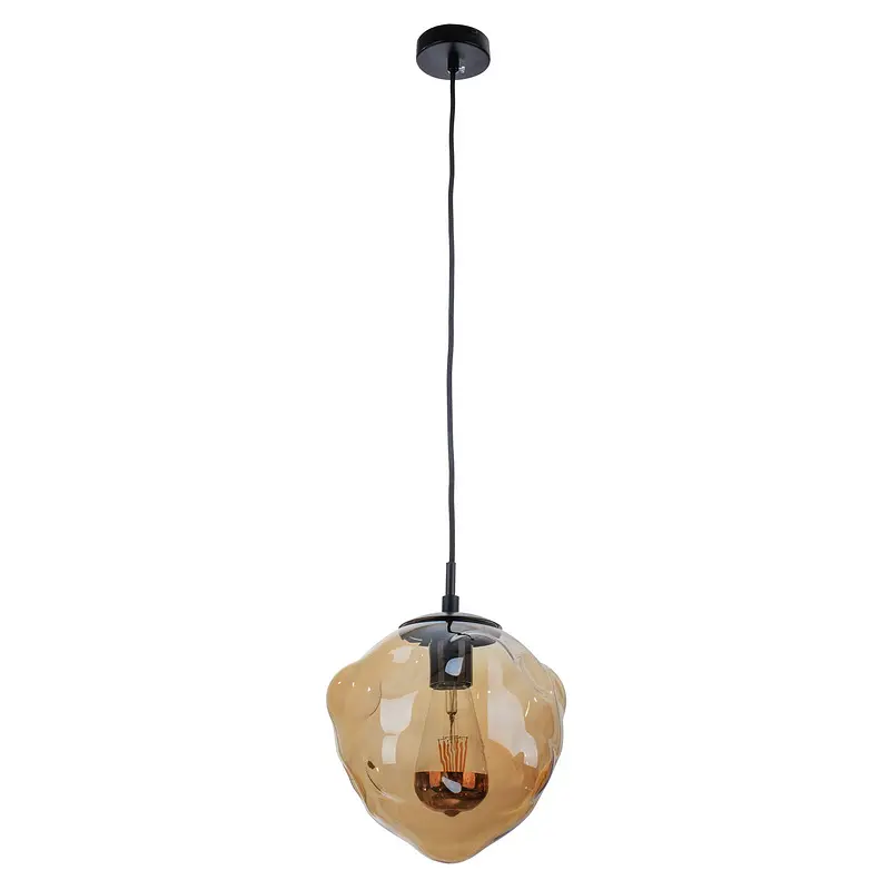Люстра потолочная подвесная BL-172S/1 E27 Amb торговой марки Brille изготовлена в стиле лофт. Она будет ярко выделяться в интерьерах техно, лофт, индустриальный. Состоит люстра из плафона асимметричной формы, золотистого цвета и черного металлического каркаса. Плафон изготовлен из стекла. Работает люстра с одной лампочкой любого типа (энергосберегающая, светодиодная, накаливания) с цоколем Е27. Купив люстру-подвес данной модели, вы приобретете качественный осветительный прибор, который имеет длительный срок службы и отличается оригинальным дизайном. Высота осветительных приборов легко регулируется, ее можно изменить, подняв или опустив цепь, веревку или трос. Таким образом люстра будет висеть на большей или меньшей высоте в зависимости от ваших предпочтений. На всю продукцию действует гарантия. Высота осветительных приборов легко регулируется, ее можно изменить, подняв или опустив цепь, веревку или трос. Таким образом люстра будет висеть на большей или меньшей высоте в зависимости от ваших предпочтений.