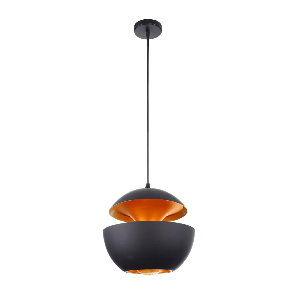 Люстра подвесная BL-696S/1 E27 "25 BK предназначена для освещения жилых и коммерческих помещений различной площади. Модель подойдет для стильной гостиной, кухни и прихожей. Несколько одинаковых подвесов будут уместно смотреться над барной стойкой или в холле отеля. Особенность люстры - сферический металлический корпус, напоминающий разрезанный шар. Внутри светильник имеет яркое золотистое покрытие, оно придает модели определенную экстравагантность. К потолку люстра крепится с помощью монтажной планки. Высоту светильника можно регулировать. Для работы осветительного устройства требуется одна лампочка с цоколем Е27. Подойдет светодиодная, энергосберегающая или лампа накаливания мощностью до 60 Вт. Черный корпус люстры эффектно сочетается с золотистым внутренним покрытием.