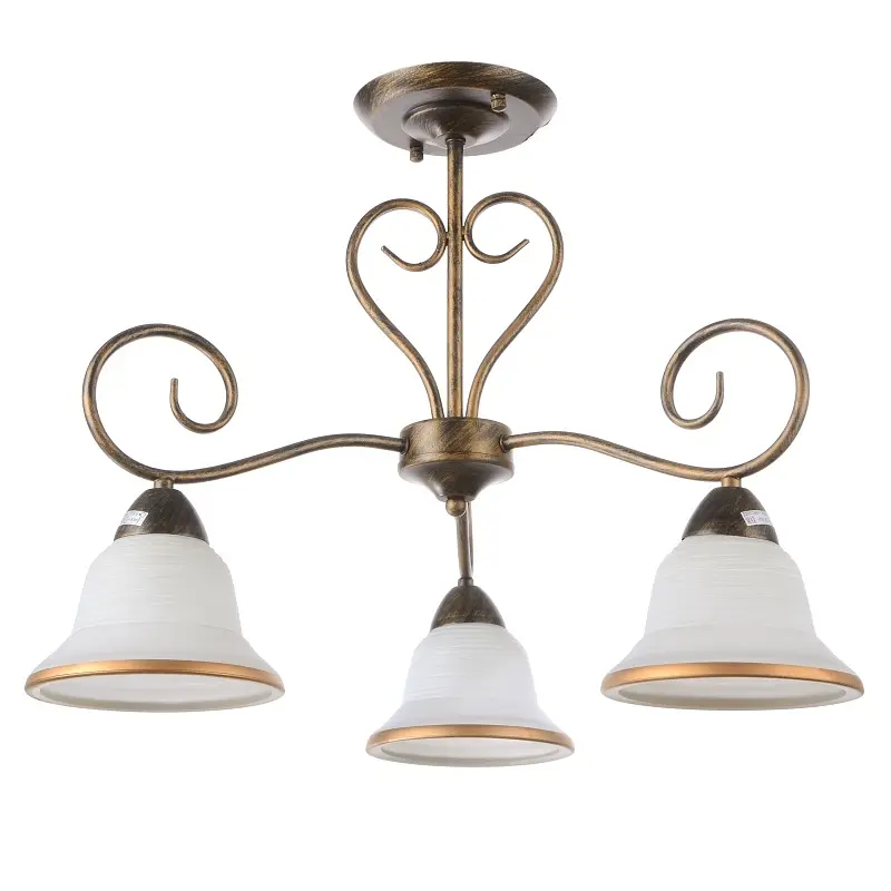 Лаконичная люстра в стиле кантри LK-153S/3 найдет себе место в тихом уютном домике на берегу реки или в ресторане, выдержанном в деревенском стиле. Материалы люстры стандартные: металл, стекло. Металлический каркас цвета бронзы, с завитками, плафоны из утолщенного стекла, белого цвета, выполнены в форме перевернутой чаши, декорированы металлической золотистой каймой. Люстра практична и неприхотлива, не требует к себе особого ухода. Для ее работы необходимо использовать три лампы с цоколем Е27 мощностью 60 Вт каждая. Люстра излучает мягкий, несколько приглушенный свет, который придаст уютному интерьеру больше комфорта и гармонии.