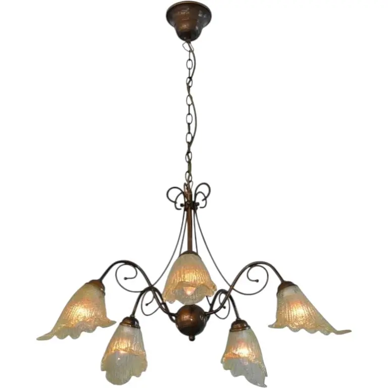 Люстра BKL-075S/5 представляет собой металлический каркас, покрытый краской, имитирующей старое золото. Каркас монтируется к основанию с помощью металлической цепи. Такое решение дает возможность регулировать люстру, в зависимости от высоты потолка в помещении. На каркасе расположены пять стеклянных плафонов, выполненных в форме колокольчиков. Источником света в данной модели люстры являются пять лампочек накаливания с цоколем Е14 мощностью 60 W каждая. По желанию лампочки накаливания можно заменить энергосберегающими или светодиодными. Люстра BKL-075S/5 станет неотъемлемой частью вашего интерьера и будет радовать ваших гостей на каждом торжественном мероприятии. Высота осветительных приборов легко регулируется, ее можно изменить, подняв или опустив цепь, веревку или трос. Таким образом люстра будет висеть на большей или меньшей высоте в зависимости от ваших предпочтений. Высота осветительных приборов легко регулируется, ее можно изменить, подняв или опустив цепь, веревку или трос. Таким образом люстра будет висеть на большей или меньшей высоте в зависимости от ваших предпочтений.