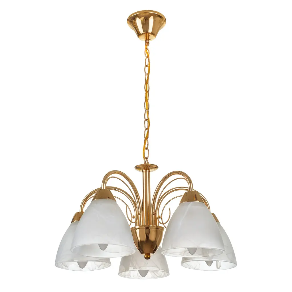 Хотите изменить дизайн интерьера вашего дома? Начните с замены осветительного прибора. Мы предлагаем вашему вниманию потолочную люстру LK-164S/5. Она изысканно оформлена плавными изгибами, которые будут повторять основную дизайнерскую идею интерьера вашего дома. Мастера традиционно изготовили люстру из металла и стекла. Ее основным преимуществом можно назвать дизайнерское исполнение без лишних заметных и помпезных деталей. Благодаря такому исполнению, люстру можно повесить как в классическом интерьере, так и в современном. Конструкция люстры состоит из металлического фигурного каркаса цвета старого золота и пяти плафонов. Плафоны матовые, белого цвета, выполнены в форме перевернутой чаши. Для работы люстры необходимо использовать пять лампочек с цоколем Е27 мощностью 60 Вт. Люстра компактна, подарит помещению мягкое освещение, способное преобразить любой интерьер до неузнаваемости. Высота осветительных приборов легко регулируется, ее можно изменить, подняв или опустив цепь, веревку или трос. Таким образом люстра будет висеть на большей или меньшей высоте в зависимости от ваших предпочтений. Высота осветительных приборов легко регулируется, ее можно изменить, подняв или опустив цепь, веревку или трос. Таким образом люстра будет висеть на большей или меньшей высоте в зависимости от ваших предпочтений.