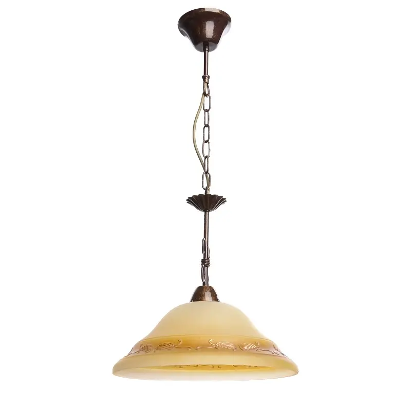 Сделайте свой классический интерьер более изысканным и праздничным вместе с люстрой от ТМ Brille BKL-428S/1 E27. Люстра в интерьере является главным элементом, который, несомненно, будет привлекать внимание и украшать помещение. Ведь каждый из нас, входя в комнату, в первую очередь обращает внимание на низко свисающий осветительный прибор. И от того, каким он будет, зависит общее впечатление о доме. Благодаря нашей люстре впечатления о вашем доме будут самыми лучшими. Изготовлена она из металла и стекла, ее высоту вы сможете регулировать самостоятельно с помощью металлической цепи путем удаления или добавления звеньев. Люстра состоит из одного стеклянного матового плафона в форме перевернутой чаши, декорированного широкой каймой с узором. Окантовка с узором светло-коричневого цвета, выигрышно подчеркивает округлую форму плафона. К цепи плафон подвешивается с помощью металлического крепления. Для работы люстры необходимо использовать только одну лампочку с цоколем Е27 мощностью 60 Вт. Благодаря тому, что плафон направлен вниз, светоотдача от люстры будет максимальной. Люстру такого плана можно вешать над обеденным столом, акцентировать с ее помощью внимание на конкретных предметах интерьера. Приятных вам впечатлений и хорошего настроения на каждый день! Высота осветительных приборов легко регулируется, ее можно изменить, подняв или опустив цепь, веревку или трос. Таким образом люстра будет висеть на большей или меньшей высоте в зависимости от ваших предпочтений. Высота осветительных приборов легко регулируется, ее можно изменить, подняв или опустив цепь, веревку или трос. Таким образом люстра будет висеть на большей или меньшей высоте в зависимости от ваших предпочтений.