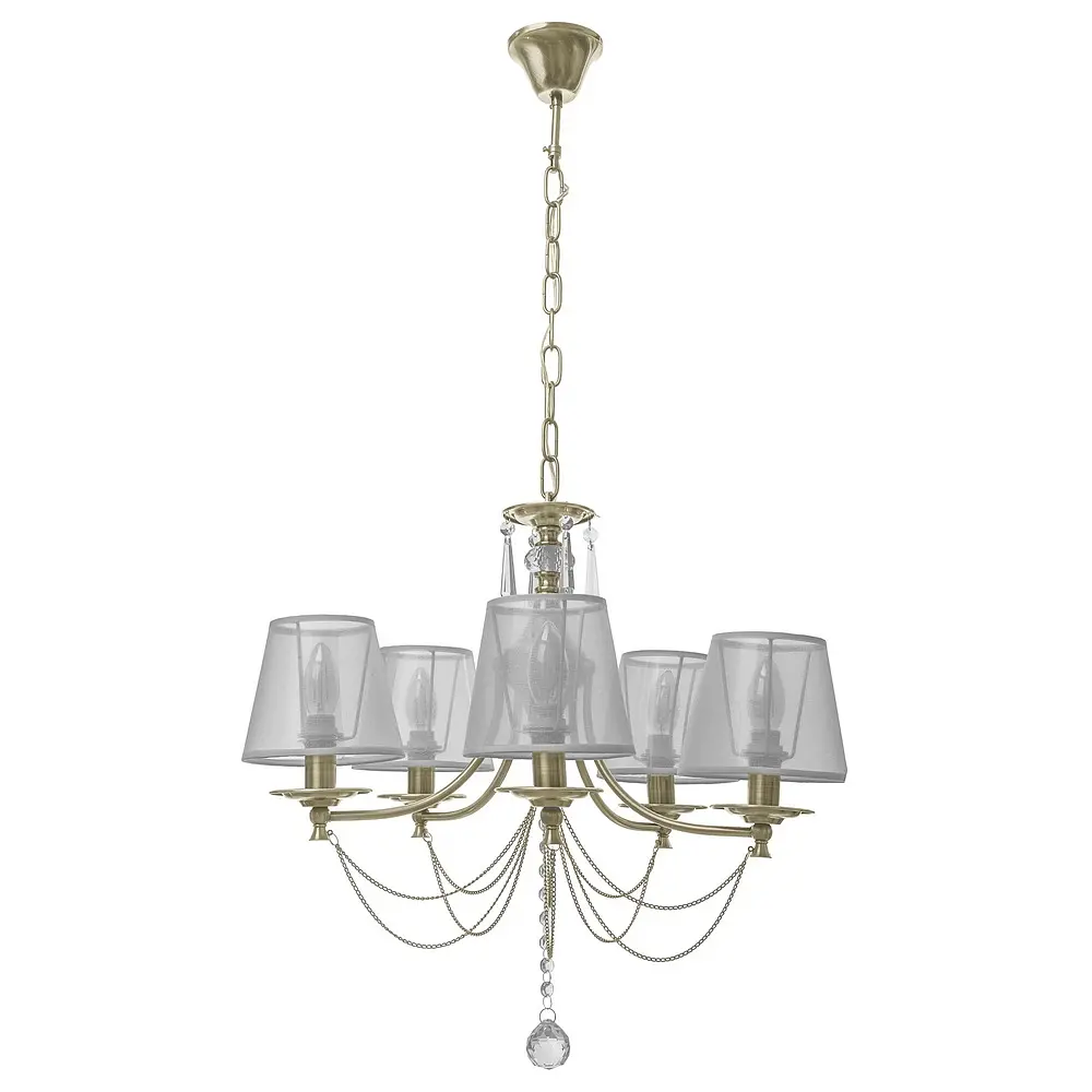Размышляя над тем, какой будет ваша спальня, гостиная или столовая: уютной, комфортной или атмосферной, подумайте о люстре BKL-669S/5 E14 AB. Эта модель соберёт все характеристики в одно целое. Комната будет и уютной, и комфортной, и атмосферной, а всё благодаря наличию абажуров. Абажуры приглушают излучаемый лампами свет, придавая ему необыкновенную мягкость. Осветительный прибор изготовлен из металла и ткани. Конструкция состоит из металлического каркаса цвета бронзы и пяти плафонов-абажуров. Плафоны изготовлены из ткани белого цвета. Дополнительно каркас украшен подвесками со стеклянными прозрачными гранеными камешками. Для работы необходимо использовать пять лампочек с цоколем Е14 (раскалительная, энергосберегающая, светодиодная). Идеально люстра будет смотреться над обеденным столом в столовой, придавая ужину нотки романтики. Высота осветительных приборов легко регулируется, ее можно изменить, подняв или опустив цепь, веревку или трос. Таким образом люстра будет висеть на большей или меньшей высоте в зависимости от ваших предпочтений. Высота осветительных приборов легко регулируется, ее можно изменить, подняв или опустив цепь, веревку или трос. Таким образом люстра будет висеть на большей или меньшей высоте в зависимости от ваших предпочтений.