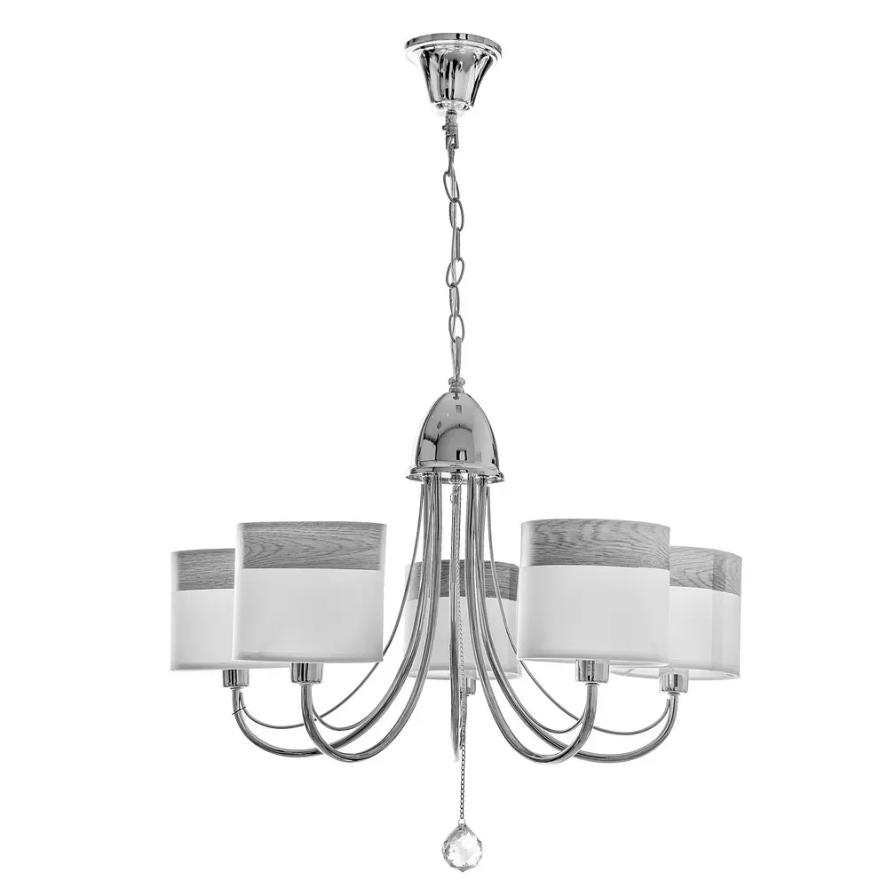 Люстра BKL-642S/5 E14 CH будет прекрасно смотреться в просторном помещении с высоким потолком. К металлическому каркасу цвета хром прикреплены пять тканевых абажуров. Плафоны в форме цилиндра, окрашены в два цвета: белый и серый. Вы можете регулировать высоту люстры с помощью добавления или удаления звеньев на цепи. Для работы люстры требуется 5 лампочек с цоколем E14. Подходят светодиодные, энергосберегающие или лампочки накаливания. Рекомендуем использовать светодиодные лампы, так как они не нагреваются, экономят электроэнергию и не содержат вредных веществ. Изысканная подвесная люстра станет украшением интерьера в классическом стиле. Ее можно дополнить бра из этой же серии