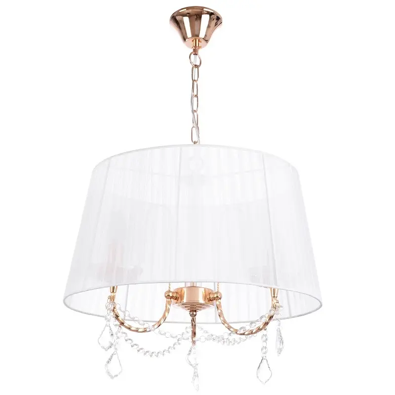 Большой популярностью сегодня пользуются люстры с абажуром. Это и не удивительно, ведь они могут внести в дом уют и комфорт. Люстра с абажуром GL-59 DL предназначена именно для комфортного отдыха. Модель изготовлена из металла и ткани. Имеет один тканевый плафон открытого типа. Плафон белого цвета, он прикреплен к металлическому каркасу цвета шампань. Поскольку плафон открытый, то лучше всего использовать свечевидные лампочки. Дополнительно каркас украшен подвесками со стеклянными гранеными камешками. Люстра рассчитана на три лампочки с цоколем Е14 мощностью 60 Вт. Светильник с абажуром можно повесить над обеденным столом или в спальне. Высота осветительных приборов легко регулируется, ее можно изменить, подняв или опустив цепь, веревку или трос. Таким образом люстра будет висеть на большей или меньшей высоте в зависимости от ваших предпочтений. Высота осветительных приборов легко регулируется, ее можно изменить, подняв или опустив цепь, веревку или трос. Таким образом люстра будет висеть на большей или меньшей высоте в зависимости от ваших предпочтений.