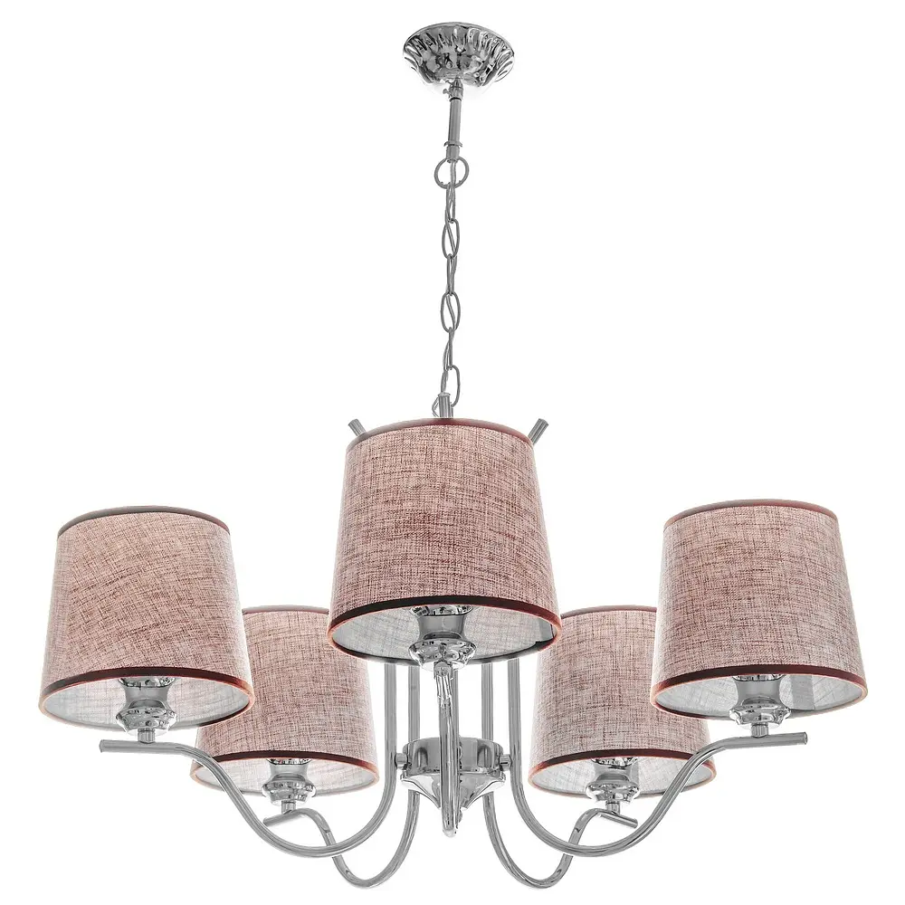 Для создания уютной и комфортной обстановки в доме идеально подойдет люстра с абажурами BKL-657S/5 E27 CH. Традиционно ее монтируют в спальне, гостиной или столовой, так как именно эти комнаты нуждаются в мягком и рассеянном свете. Тканевые абажуры обладают особенностью поглощать свет, придавая помещению атмосферу приглушенных тонов. Каркас люстры изготовлен из металла, цвета хром. Плафоны тканевые, коричневого цвета. Для работы необходимо использовать пять лампочек с цоколем Е27 (раскалительная, энергосберегающая, светодиодная). Высоту можно изменять с помощью металлической цепи. На всю продукцию действует гарантия.